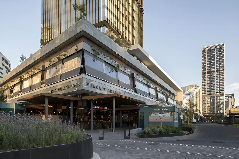Un edificio de 35 niveles con cinco niveles de estacionamiento subterráneo, integrado al Centro Comercial Andares. Incluye un centro comercial de tres niveles y 27 niveles de oficinas AAA con certificación LEED Oro, ofreciendo un espacio moderno, sostenible y de alto rendimiento.