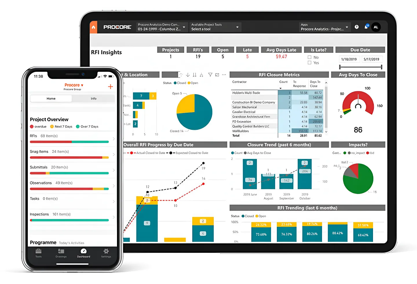 Mediante el uso de la plataforma Procore para los proyectos conseguimos una gestión unificada, integral de todos los procesos y fases administrativas, control de obra, calidad y control económico. Todo ello, con una optimización en los procesos, pudiendo trabajar muchos colaboradores de forma simultanea y poder ver los cambios y todo en tiempo real.
